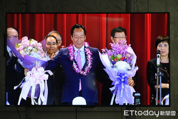 郭臺(tái)銘(中)正式卸任鴻海董事長(zhǎng)。(圖片來(lái)源:臺(tái)灣“東森新聞云”)
