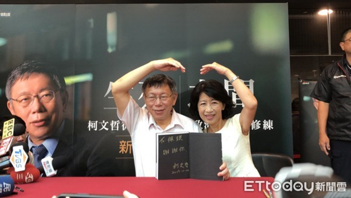 柯文哲太太陳佩琪驚喜現身簽書會!兩人比愛心合影留戀