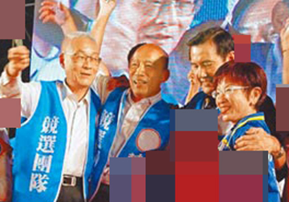 韓國瑜、馬英九、吳敦義、洪秀柱合體擁抱,展現(xiàn)大團(tuán)結(jié)。(圖片來源:臺(tái)灣“中時(shí)電子報(bào)”)