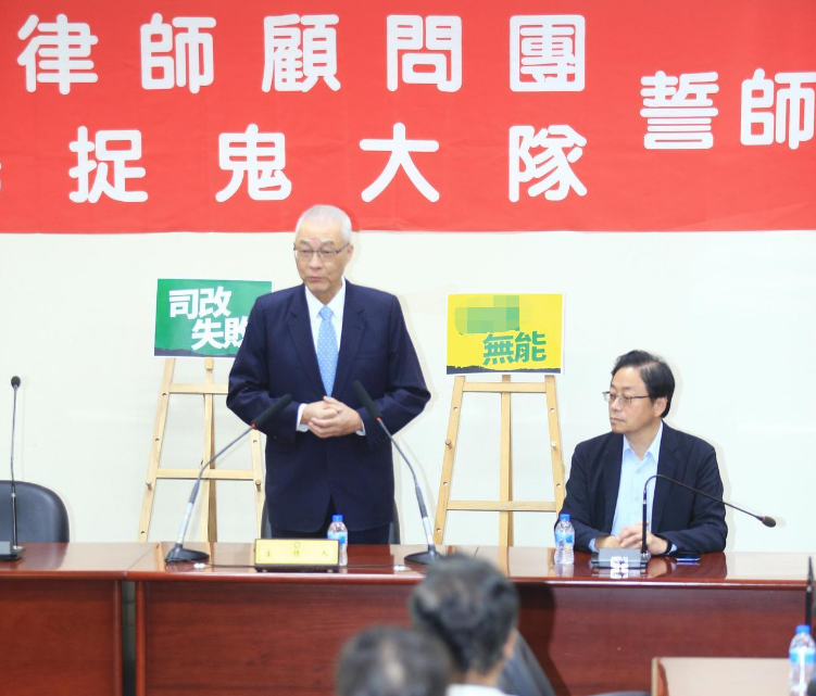 據中國國民黨官方網站發出的新聞稿,國民黨主席吳敦義出席了“韓國瑜律師顧問團”及“全民捉鬼大隊”誓師大會。吳主席表示,自由民主的臺灣,自從蔡英文擔任領導人后,就受到了威脅、大打了折扣,法治更不在眼內。他感謝臺灣律師界組成“韓國瑜律師顧問團”,與國民黨一起捍衛自由民主法治。
