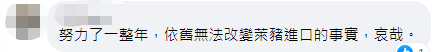 對(duì)此,網(wǎng)友紛紛在高金素梅臉書留言發(fā)表自己的看法,有網(wǎng)友表示,“努力了一整年,依舊無法改變‘萊豬’進(jìn)口的事實(shí),哀哉。”