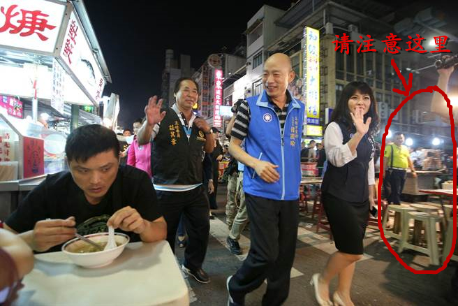 國民黨高雄市黨部主委韓國瑜8日晚率國民黨籍議員在六合夜市主委莊其章陪同下到六合夜市逛了一圈,結(jié)果你猜怎么著?攤商比逛夜市的人還多,擺在中間的長桌、椅凳更是一片空蕩。