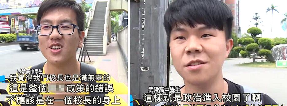 學(xué)生也是紛紛為自家校長喊冤,“這根本是政策的錯(cuò)誤”、“這樣不就是政治介入校園了”。
