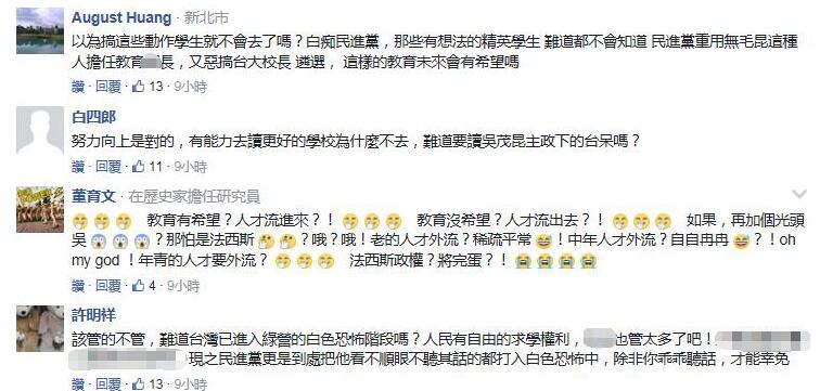 網(wǎng)友們聞此不僅直言“不會以為搞這些動(dòng)作學(xué)生就不去了吧”,更嘆:臺灣是沒有言論自由了嗎?