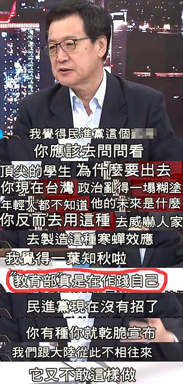 說了這么多,明眼人都很清楚島內(nèi)高中畢業(yè)生“棄臺就陸”的趨勢已經(jīng)擋不住了,為什么蔡當(dāng)局還要如此強(qiáng)硬阻攔呢?黃智賢一語道出了真相!