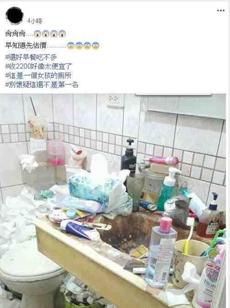 臟成這樣的廁所比公廁還不如!一名網(wǎng)友在《爆廢公社二館》PO出某位女子家中廁所,嚇歪網(wǎng)友。3個垃圾桶衛(wèi)生紙爆滿,洗手臺、地板污垢黑到發(fā)亮,還有牙刷、洗面奶、洗手乳等衛(wèi)生用品到處放,神奇的是還有一張百元鈔掉在水桶里,很難想象這里有女孩子生活過。對此,原PO驚恐寫下,“XXX,早知道先估價……收2200元清潔費(fèi)好像太便宜了”,慶幸自己早餐吃不多,沒嘔吐真是太好了!