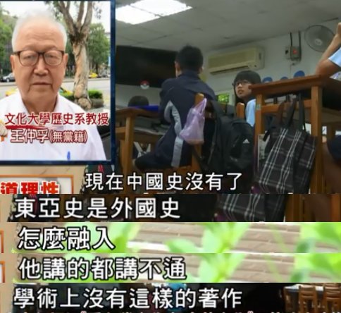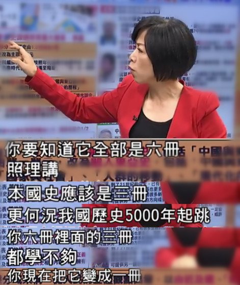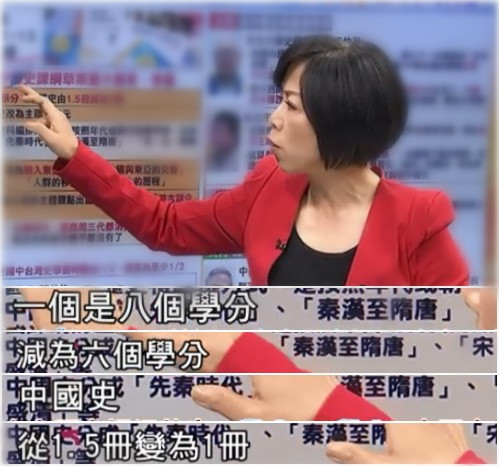 從8學分變成6學分,教材也從1.5冊變成了1冊,要知道臺灣的歷史教材總共是6冊,中國史竟然只占六分之一。