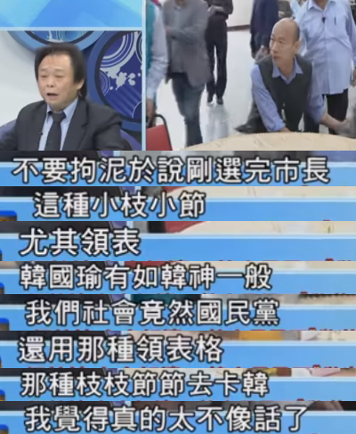 王世堅在政論節目中,首先試圖對自己的身份進行一次明確的定位。當他表示自己不是“韓粉”時,立即遭到了嘉賓的回擊,有人表示,他離“韓粉”只有一線之隔了;也有人表示,王世堅應該是“冰粉”(韓國瑜女兒韓冰的粉絲);還有嘉賓提出了“正確答案”:你是“柯黑”。