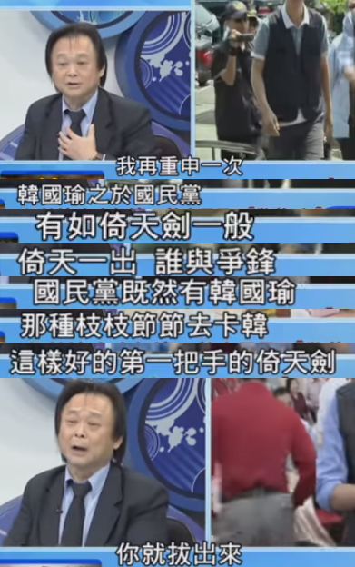 說到興奮處,王世堅更強調,韓國瑜之于國民黨有如倚天劍,“倚天一出,誰與爭鋒”,那國民黨就該不吝嗇拔出這把兵器,不要到時候2020輸了,又怪兵器不好。