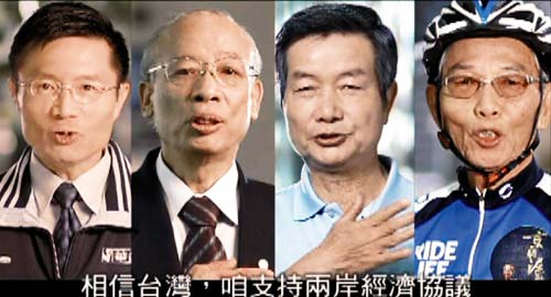中國臺灣網(wǎng)4月14日消息 據(jù)臺灣《聯(lián)合報》報道,為了宣傳兩岸經(jīng)濟(jì)合作框架協(xié)議(ECFA),臺當(dāng)局“經(jīng)濟(jì)部”請出臺灣捷安特自行車創(chuàng)辦人劉金標(biāo)、和友紡織董事長卓欽銘、慶鴻機電董事長王武雄、福助針織公司(華貴牌絲襪)總經(jīng)理魏平祺等人拍廣告,以“傳產(chǎn)(傳統(tǒng)產(chǎn)業(yè))F4”身份擔(dān)任代言人。
