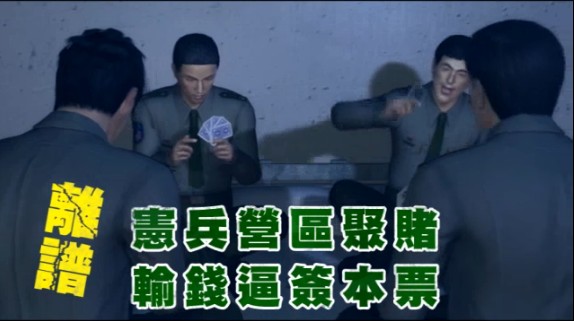 報道指出,駐守松山機場的臺軍憲兵202指揮部350營,4名士官就寢后玩撲克牌“大老二”,為免出現賭資混亂,還用記點計算輸贏,曾姓士官因輸了近4萬元。當其他3人要求付錢時,曾表明沒錢,另一名士官怕曾賴帳,要求曾簽本票。曾簽完本票后,質疑自己遭詐賭,向營長自首。
