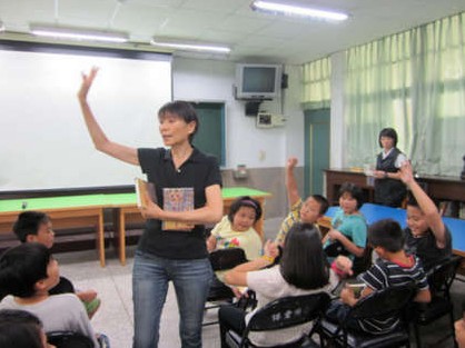 周美青也按學童知識程度分別講了《十二生肖的故事》、《王羲之》,說故事后還有有獎征答,與小朋友進行互動。小朋友搶答的內容多樣化,童言童語讓她莞爾。(中國臺灣網 焦源源)