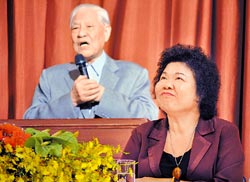 李登輝、陳菊神情各異。 來源:臺灣《中國時報》