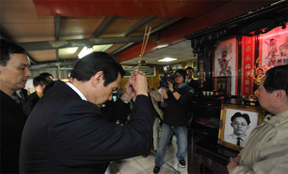 中國臺灣網2月1日消息 據臺灣《中時電子報》報道,臺灣地區領導人馬英九十分重視臺空軍士兵江國慶疑遭冤死一案,1日上午11時,他親赴江國慶家中上香致歉。