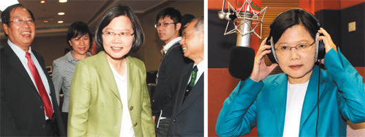 前天,蔡英文接受臺灣“中廣”董事長趙少康專訪,穿“土耳其藍”的外套(右圖),她昨天出席“自己人”場子、“世界臺商群英”則會穿“橄欖綠”的外套(左圖)。