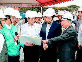 馬英九在多名官員陪同下,前往料羅碼頭到金門醫院視察施工進度,并與多位鄉、鎮長及里長座談。