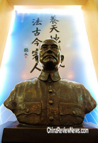 臺灣“考試院”6日舉行孫中山銅像揭幕典禮,這座“辛亥百年第一尊”的孫中山銅像放置在“考試院”大廳,后方則是孫中山巨幅手書“養(yǎng)天地正氣、法古今完人”。