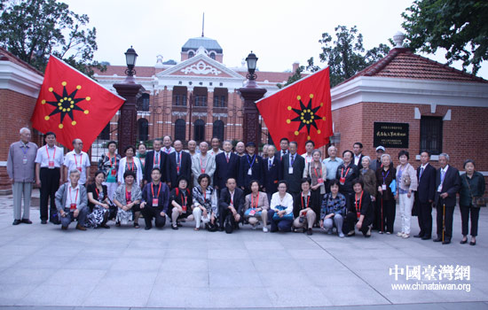8日上午,以黃埔同學(xué)會(huì)會(huì)長(zhǎng)林上元為代表的黃埔同學(xué),及海內(nèi)外黃埔組織代表、黃埔后裔及親友等20余人,在辛亥革命武昌起義紀(jì)念館合影。(中國(guó)臺(tái)灣網(wǎng) 李丹 攝)