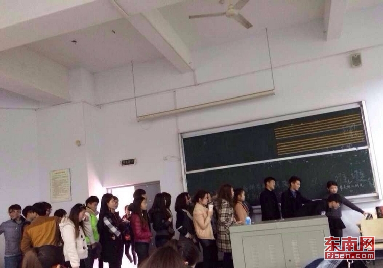 同學(xué)們?cè)谡n前輪流“刷臉”簽到