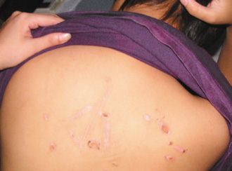 潘姓少女遭同學(xué)在背上刮皮刻字凌虐。