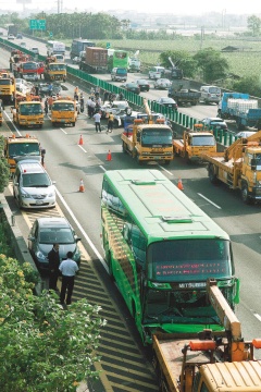 接連兩起車禍,回堵車陣更嚴重,統(tǒng)聯(lián)事故在下午3時許排除,槽車事故延至4時30分左右處理完,前后長達19小時。參與槽車處理的環(huán)保署毒災應變?nèi)藛T指出,毒災處理安全第一,不能像一般車禍求快,耗費時間是必然的。(芮文輝)