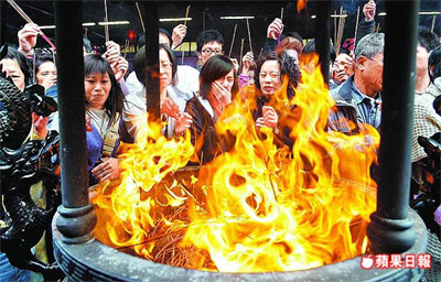 大年初一,臺灣各大廟宇香火鼎盛,臺北市行天宮也被信眾擠得水泄不通。 來源:臺灣《蘋果日報》