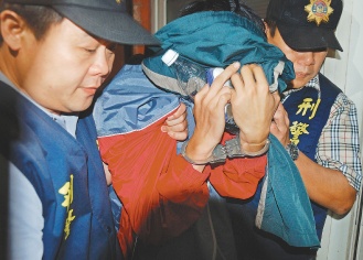 臺灣清華大學碩士呂建賢(中)加入制毒集團,制造安非他命,被捕后掩面哭泣。 來源:臺灣《聯合報》