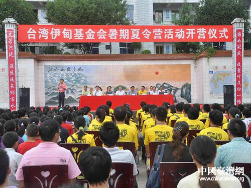 中國臺灣網7月15日通江消息 日前,臺灣伊甸社會福利基金會暑期夏令營開營儀式在巴中市通江縣火炬中學舉行,拉開了臺灣志工團在火炬中學的支教行動序幕。臺灣伊甸社會福利基金會主任朱永祥,巴中市委統戰部副部長、市人民政府民宗事務管理辦公室主任彭朝家,通江縣委常委、統戰部長、縣總工會主席張峨,縣委統戰部副部長、縣臺辦主任李通平出席開營儀式。儀式由通江縣教育文化體育局副局長董開平主持。