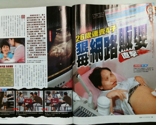 據報道,其中一名26歲的小婷,已賣了3胎,目前正準備販賣腹中懷孕7個月的第4胎,指稱生完這胎就想結扎,想對自己好一點,因此開價30萬元新臺幣。為了證明胎兒健康,產檢時主動邀請欲收養夫妻到診所觀看。