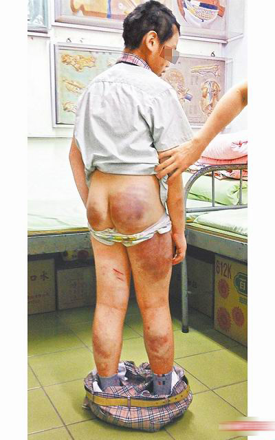 據(jù)小區(qū)鄰居介紹,13日上午,見到男童一瘸一拐走到警衛(wèi)室裝開水,鄰居上前詢問,男童回答,“被父親與繼母用鐵管、木條輪流毆打。”鄰居見狀非常心疼,憤而通報社會主管部門。鄰居將男童送到學(xué)校后,才發(fā)現(xiàn)男童屁股及下半身都被打得瘀青紅腫,慘不忍睹。