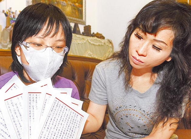 警員林坤賢的妻女拿著寫給父親的信,希望林坤賢要以家庭為重。 來源:臺灣媒體