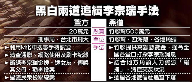 黑白兩道追緝李宗瑞的方法(圖片來自臺媒)