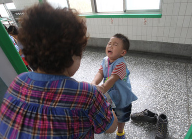 據臺灣媒體報道,今天是臺灣的幼兒園開學日,不少小朋友上學初體驗,都因為怕生而黏在爸媽身邊,只要家長一離開,就哇哇放聲大哭。