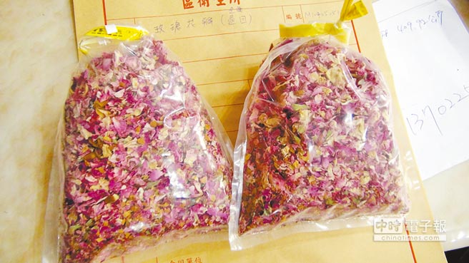 高雄市何容食品公司從印度進口玫瑰花瓣驗出含禁用農藥DDT。(中時電子報圖 高雄市衛生局提供)