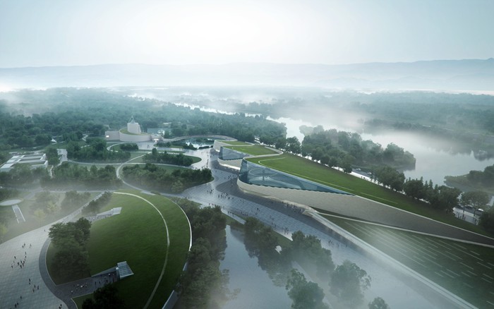三星堆博物館現有兩個展館建筑,面積1.08萬平方米,隨著三星堆遺址考古成果不斷出現,現有展館已無法容納新文物展示。為建設世界一流遺址博物館,2020年10月,三星堆博物館投入1000萬元,面向全球征集概念設計方案,共有57家國內外設計公司及團隊報名參與。記者在新館開工現場了解到,在激烈的設計方案競爭中,中國建筑西南設計研究院聯合體的方案最終成功當選。