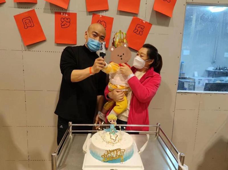 看著醫(yī)護(hù)人員為桐桐準(zhǔn)備的驚喜,以及“大白”身上手寫的祝福語,劉磊百感交集。他說,桐桐母親在懷孕時查出了疾病,去年4月15日,桐桐剛出生沒多久,妻子又再次被推進(jìn)了手術(shù)室。“我記得很清楚,那個時候我是兩家醫(yī)院分頭跑、分頭照顧。這一年雖然累點,但有孩子有家人陪伴,我其實挺充實的。雖然因為疫情的原因只有我和桐桐爺爺在汶水路方艙醫(yī)院里陪孩子過生日,但有這么多人陪伴,我很感動。”劉磊告訴記者,前幾天,桐桐母親就在微信上一直詢問如何給孩子過周歲生日。“醫(yī)護(hù)人員太忙了,所以我們一開始只想能不能麻煩醫(yī)護(hù)人員煮個面、下個荷包蛋,但沒想到他們給了我們這么大的驚喜。”劉磊說。