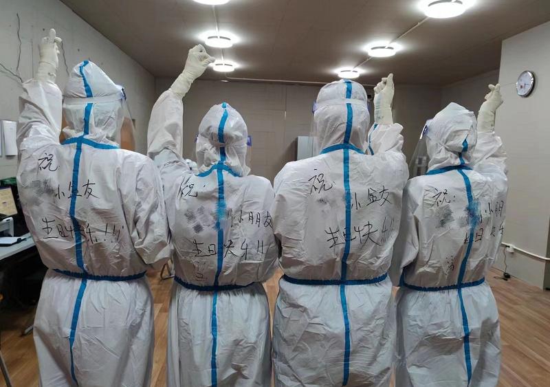 劉磊坦言,在得知全家人要分開進(jìn)行隔離觀察治療,尤其還要帶著桐桐住到方艙時,他特別慌張,但是來到了方艙醫(yī)院后,看到醫(yī)護(hù)人員對年幼的孩子以及家人們的悉心照護(hù),他逐漸放下心來。“除了感謝還是感謝,希望醫(yī)護(hù)人員在照顧我們的同時,也要照顧好自己,團(tuán)結(jié)一心,共克時艱。”劉磊說。