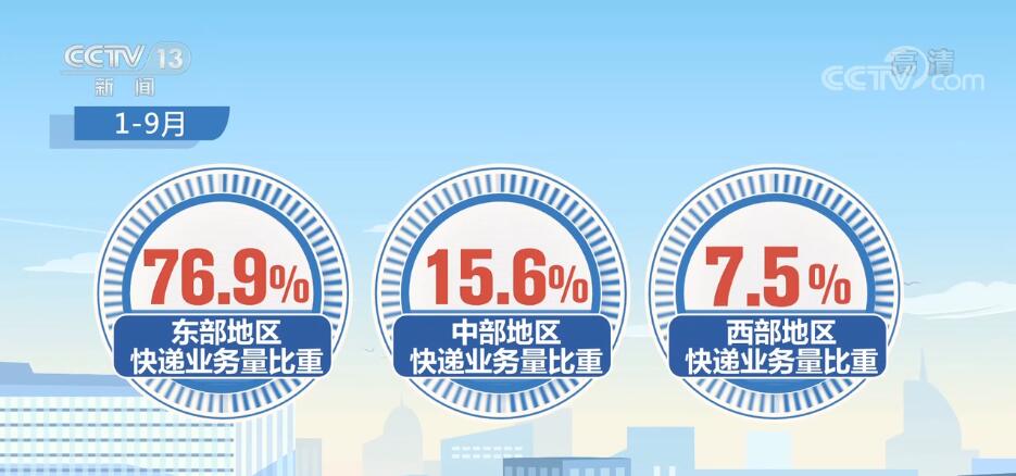 國家郵政局?jǐn)?shù)據(jù)顯示,1—9月,東、中、西部地區(qū)快遞業(yè)務(wù)量比重分別為76.9%、15.6%和7.5%。與去年同期相比,東部地區(qū)快遞業(yè)務(wù)量比重下降1.4個百分點;中部地區(qū)快遞業(yè)務(wù)量比重上升1.3個百分點;西部地區(qū)快遞業(yè)務(wù)量比重上升0.1個百分點。