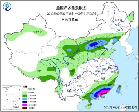 中新網(wǎng)9月19日電 據(jù)中央氣象臺消息,未來三天,全國降水范圍較大,其中,甘肅河西地區(qū)東部、內(nèi)蒙古河套東部、陜西北部、山西北部、河北中北部、北京、天津北部、遼寧中南部、四川盆地西南部、湖北東部、湖南北部和南部、安徽中南部、江蘇西南部、浙江東南部、江西南部、福建東部和南部、臺灣、廣東、廣西大部有大雨或暴雨;臺灣大部、福建東南部、廣東大部、廣西東部等地有大暴雨或特大暴雨。上述地區(qū)局部并伴有短時(shí)雷雨大風(fēng)或冰雹等強(qiáng)對流天氣。