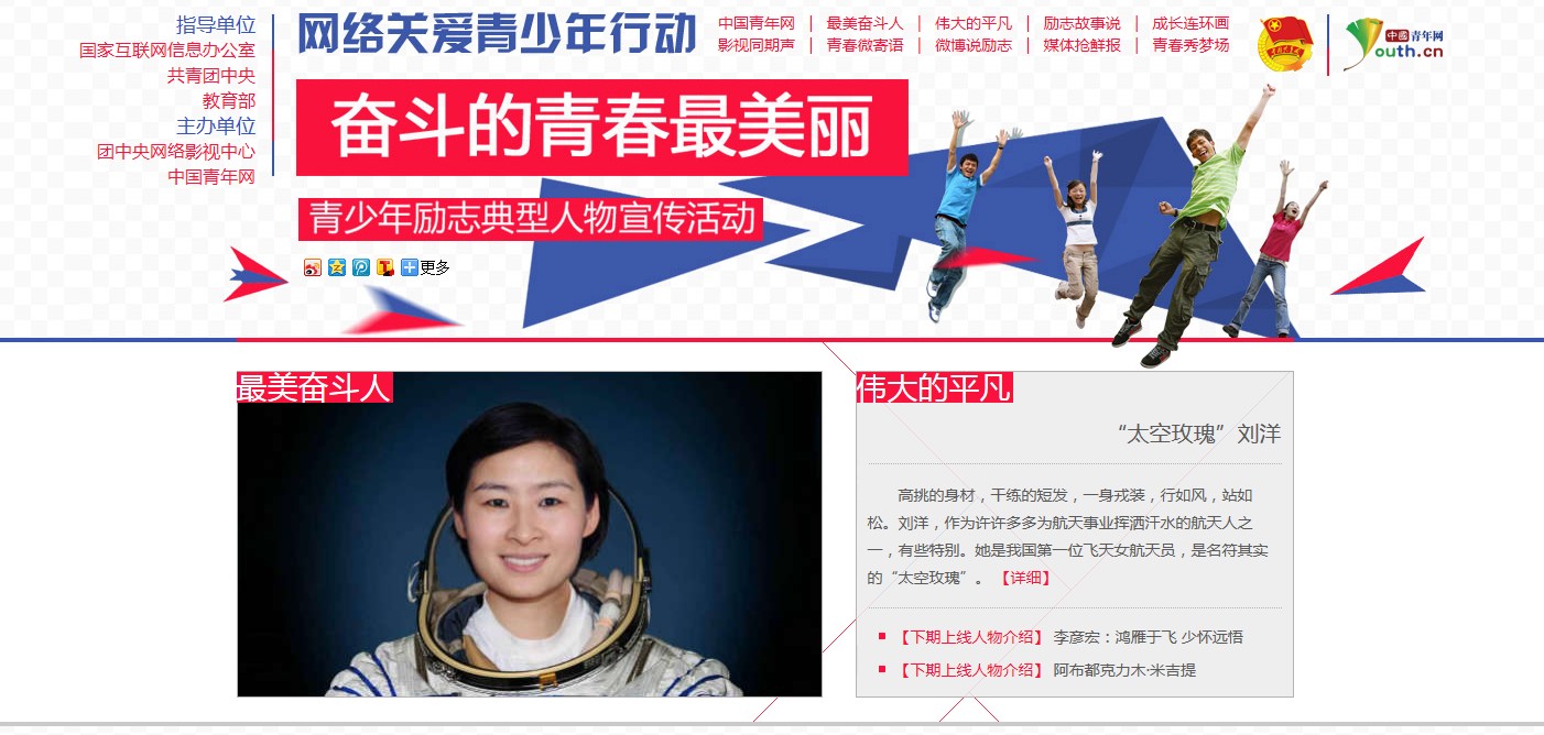 “奮斗的青春最美麗”青少年勵(lì)志典型首期人物劉洋專題頁(yè)面截圖。資料圖