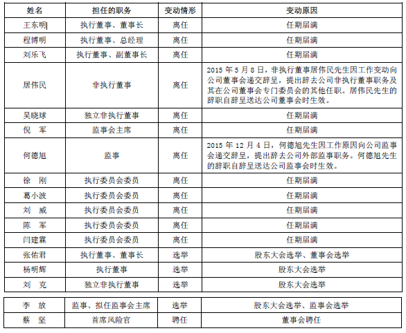 鳳凰證券注意到在年報的第79頁,公司董監高變動情況一表中,離任的高管包括,原董事長王東明、原總經理程博明、執委會委員徐剛、葛小波、劉威、陳軍、閆建霖。除王東明外,其余6位均為此前涉案高管。任期終止日為2016年1月19日。