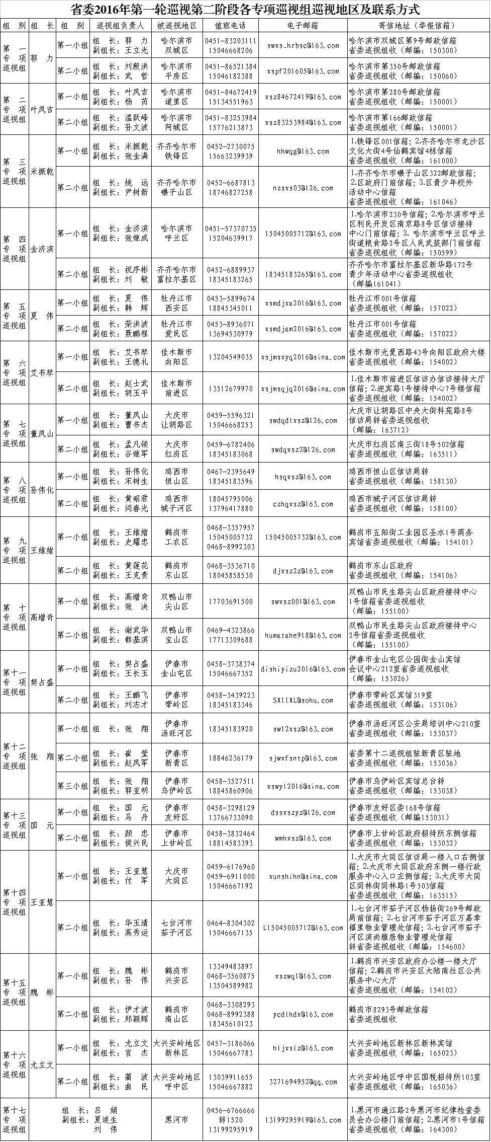 按照黑龍江省委統一部署,4月18日至22日,省委2016年第一輪巡視第二階段16個專項巡視組已陸續進駐哈爾濱市雙城區等33個區,開展約1個月的專項巡視;4月28日,1個專項巡視組進駐黑河市,開展約20天的巡視“回頭看”。