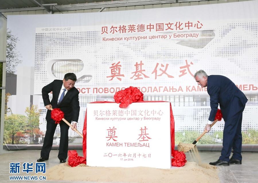 6月17日,國(guó)家主席習(xí)近平同塞爾維亞總統(tǒng)尼科利奇在貝爾格萊德共同出席中國(guó)文化中心奠基儀式。 新華社記者 蘭紅光 攝 圖片來(lái)源:新華網(wǎng)