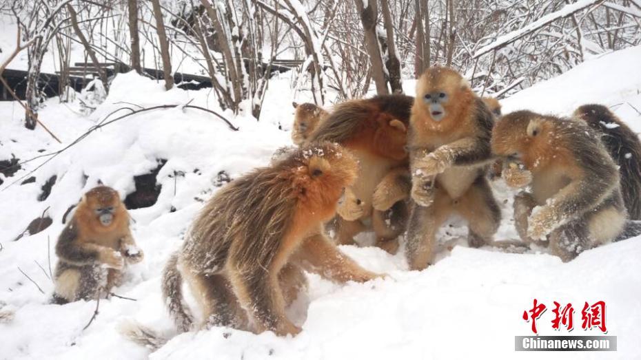 神農架降暴雪 金絲猴打雪仗
