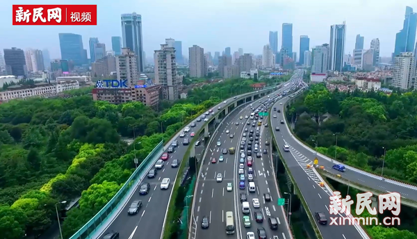 圖說(shuō):航拍下的申城高架。視頻截圖