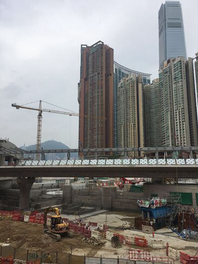 圖片說明:正在建設(shè)中的廣深港高鐵香港段西九龍總站工地