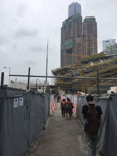 香港市民穿過高鐵工地臨時(shí)開辟的通道