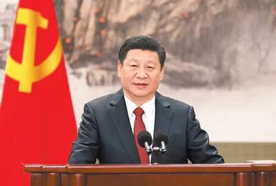 2017年10月25日,剛剛在中國共產黨第十九屆中央委員會第一次全體會議上當選的中共中央總書記習近平和中共中央政治局常委李克強、栗戰書、汪洋、王滬寧、趙樂際、韓正在人民大會堂同采訪十九大的中外記者親切見面。這是習近平發表重要講話。