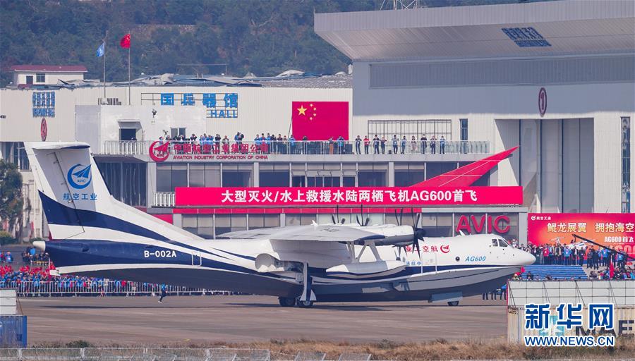 AG600飛機去年7月23日在航空工業通飛華南公司總裝成功下線,2017年4月29日,AG600在珠海進行了首次地面滑行試驗,5月20日,AG600成功完成首次低速滑行試驗。最近幾個月,AG600先后成功完成上天中、高速滑行試驗。