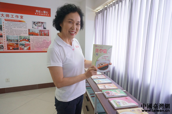 劉桂香展示《金牌育兒》系列叢書之“月子餐”。(中國臺灣網(wǎng) 雍紫薇 攝)